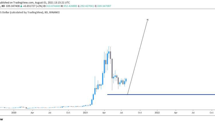 بعد از یک اصلاح حدودا ۷۰ درصدی با صعودی شدن مومنتوم در تایم فریم های کوتاه مدتی قیمت این رمزارز محبوب حالا ارزش BNB به ۳۳۸ دلار در این لحظه رسیده است , هنوز احتمال رسیدن قیمت به ۱۶۵ دلار وجود دارد ولی بعد از این کاهش قیمت در صورت اتفاق افتادن رالی صعودی بلند مدتی را برای این آلت کوین در پیش بینی میکنیم.