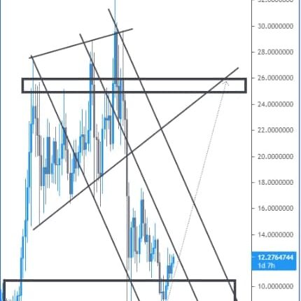 در تحلیل تکنیکال صورت گرفته بر روی این رمزارز در باکس پایین حمایت خوبی صورت گرفته در صورت شکست مقاوت های داینامیک که بر سر راه قیمت است میتوان انتظار قیمت ۲۵ دلار را در طولانی مدت برای قیمت در نظر داشت.