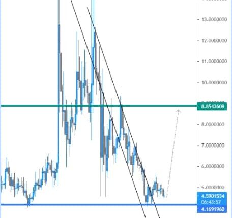 رمزارز محبوب و معروف نانو به لحاظ تکنیکال به حمایت اول خودش رسیده وضعیت مومنتوم(RSI) نشانه های صعود را نشان میدهد, میتوان با استاپ ۳.۵ دلار که پایین ترین کف قیمتی است اقدام به خرید کرد و اتنظار تارگت ۸.۸دلار را داشت .