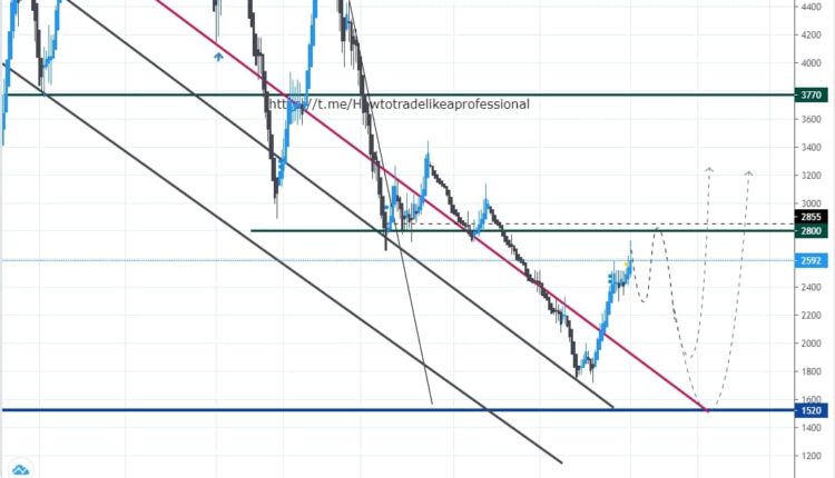 با استفاده از خطوط حمایت و مقاومت استاتیک و داینامیک که در تحلیل تکنیکال این نماد صورت گرفته نحوه عمکرد قیمت بر روی چارت ترسیم شده است. زون مقاومتی که در قیمت ۲۸۰۰ ریال وجود دارد, سد محکمی است که امکان اصلاح قیمت را ایجاد میکند.