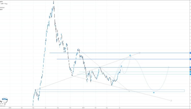 ??با توجه به بررسی های هارمونیک ، هندسی و مومنتوم شاخص در تایم فریم روزانه ، هفتگی می توان این استنباط را داشت که ترند نزولی هنوز تمام نشده است و یک ریزش دیگر در ادامه محتمل هست