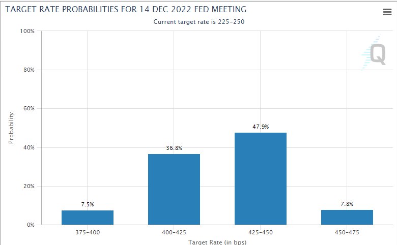 هر چیزی کمتر از ۴.۴ درصد در پایان سال جاری، ارزش دلار را کاهش خواهد داد، در حالی که هر چیزی بیش از ۴.۴ درصد به این معنی است که فدرال رزرو نرخ بهره را برای چهارمین بار متوالی %۰.۷۵ در ماه نوامبر افزایش خواهد داد. این امر به آشفتگی در بازارها می افزاید.
